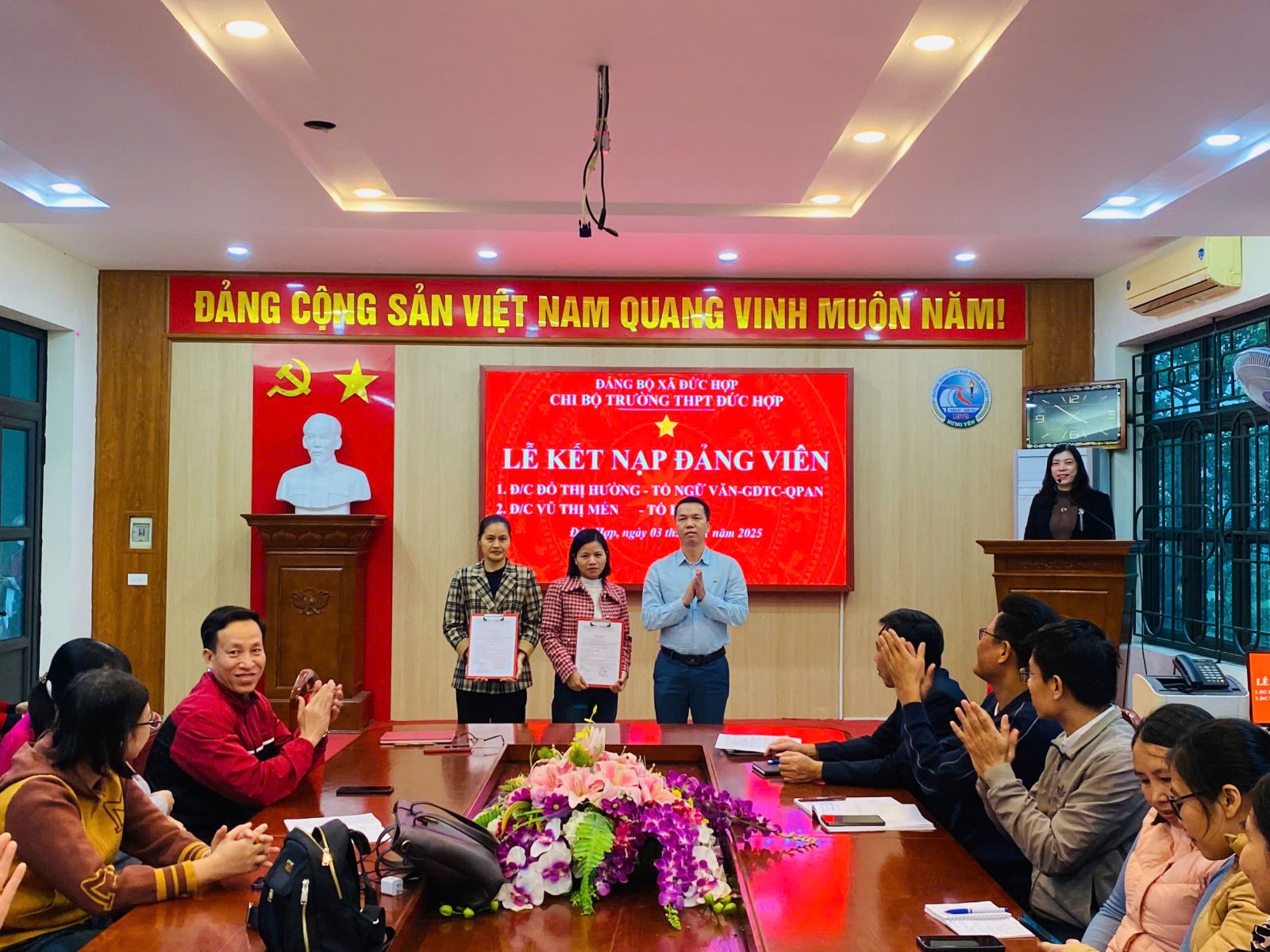 Buổi sinh hoạt và lễ kết nạp kết thúc trong không khí phấn khởi, tự hào và đoàn kết. Đây là động lực quan trọng để toàn thể đảng viên, cán bộ, giáo viên Trường THPT Đức Hợp tiếp tục nỗ lực hoàn thành tốt nhiệm vụ được giao trong năm học 2025–2026.