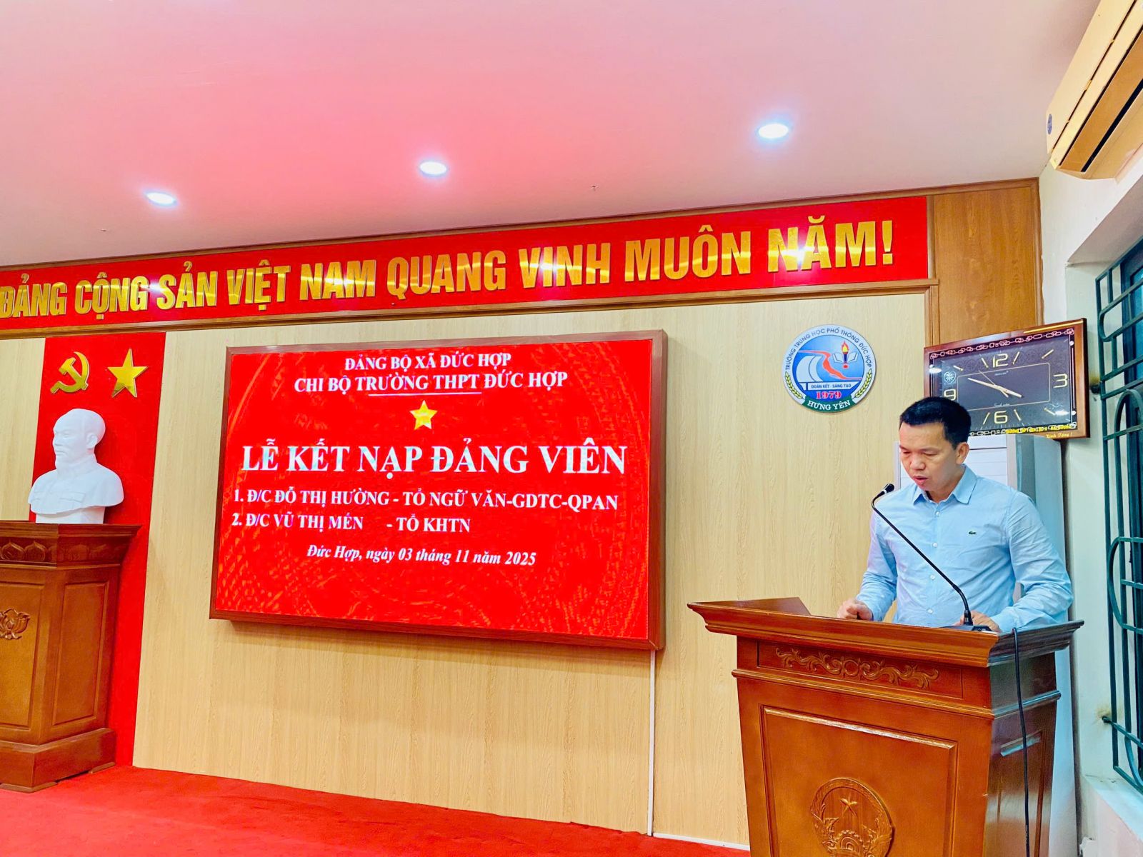 📸 Ảnh: Chi bộ Trường THPT Đức Hợp tổ chức Lễ kết nạp Đảng viên mới ngày 03/11/2025.