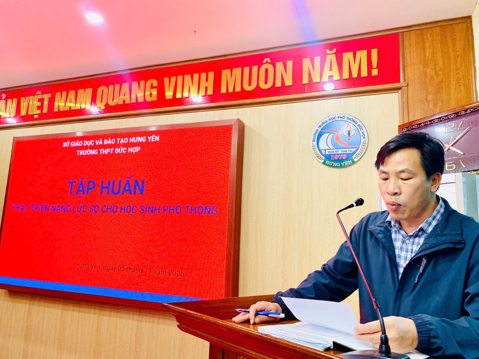 Thực hiện kế hoạch bồi dưỡng thường xuyên năm học 2025 – 2026, sáng ngày 5/11, tại trường THPT Đức Hợp đã diễn ra buổi tập huấn chuyên đề “Ứng dụng trí tuệ nhân tạo (AI) và Chuẩn năng lực số cho giáo viên”. Buổi tập huấn do cô Đinh Thị Miền và cô Chử Thị Tuyến, giáo viên Tổ Toán – Tin, trực tiếp hướng dẫn.