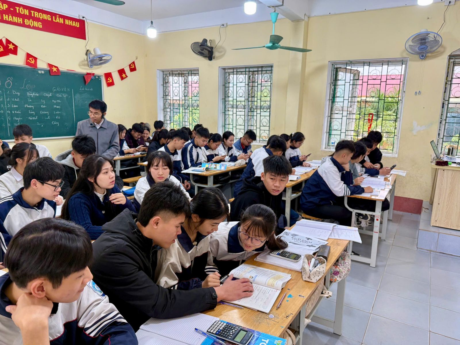 Ảnh 3: Giáo viên tổ Toán – Tin Trường THPT Đức Hợp dự giờ, quan sát tiết học theo hướng nghiên cứu bài học.