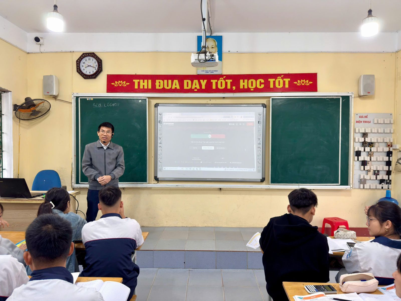 Trong tiết học, giáo viên đã xây dựng tiến trình dạy học hợp lý, chú trọng việc hình thành khái niệm logarit trên cơ sở khai thác kiến thức về lũy thừa thông qua hoạt động nhóm lớn. Các em được chuẩn bị trước nội dung bài học tại nhà và báo cáo thảo luận tại lớp. Các hoạt động học tập được thiết kế theo hướng phát huy tính tích cực, chủ động của học sinh, khuyến khích các em tham gia trả lời câu hỏi, trao đổi và trình bày ý kiến.