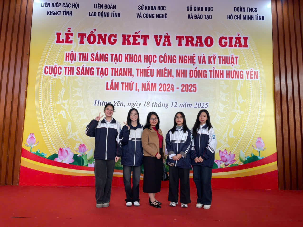 Sáng ngày 18/12/ 2025, tại Trung tâm Hội nghị tỉnh,sản phẩm Website “Du lịch Hưng Yên về miền di sản” dưới sự hướng dẫn của cô giáo Nguyễn Thị Kiên Chung đã vinh dự được Ban Tổ chức Cuộc thi Sáng tạo thanh, thiếu niên, nhi đồng tỉnh Hưng Yên lần thứ I (2024 - 2025) trao giải Nhì.