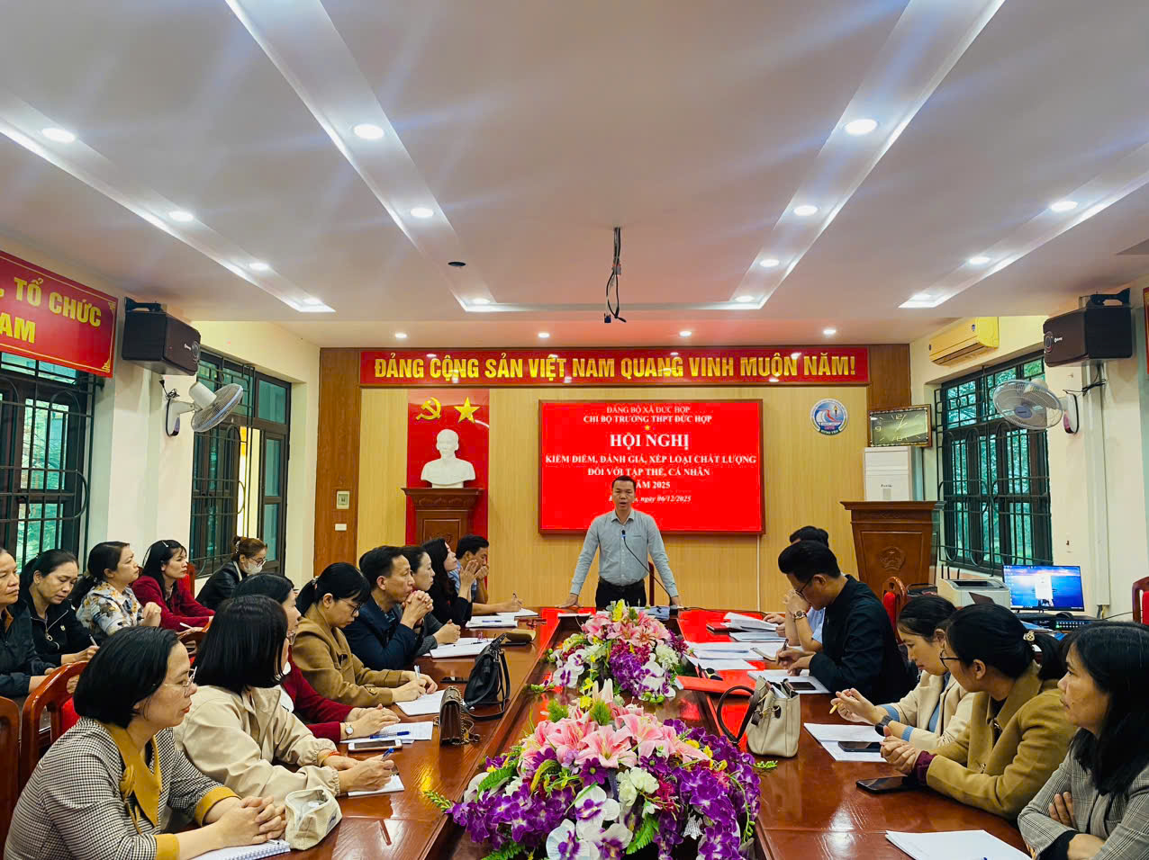 Trong bối cảnh Chi bộ trực thuộc Đảng ủy xã Đức Hợp, công tác kiểm điểm, đánh giá và xếp loại chất lượng tập thể – cá nhân được Chi bộ Trường THPT Đức Hợp xác định là nhiệm vụ trọng tâm, có ý nghĩa đặc biệt quan trọng đối với công tác xây dựng Đảng và hoàn thành nhiệm vụ giáo dục – đào tạo trên địa bàn.