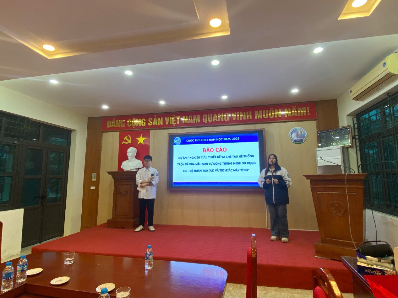 Dự án “Nghiên cứu, thiết kế và chế tạo hệ thống trộn và pha màu sơn tự động thông minh sử dụng trí tuệ nhân tạo (AI) và công nghệ nhận diện hình ảnh” của Trường THPT Đức Hợp.