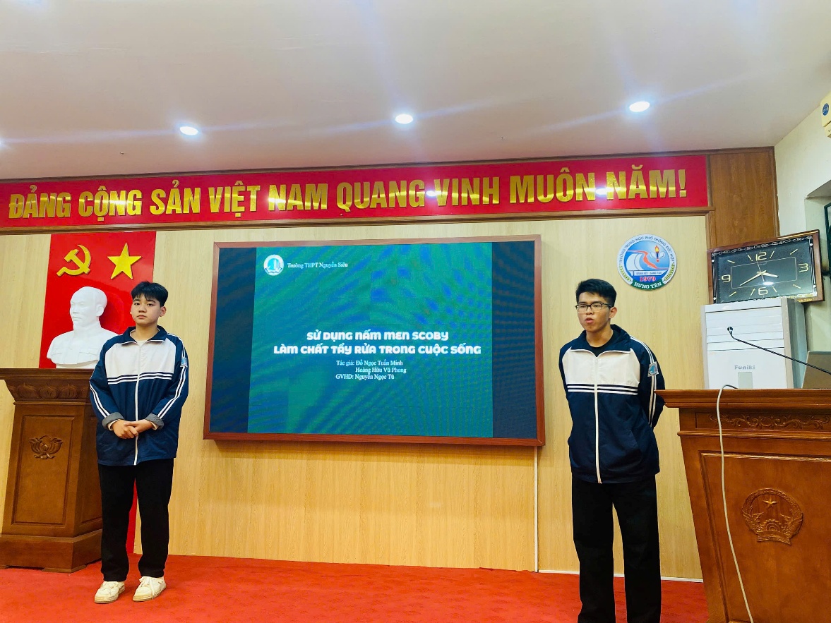 Dự án “Sử dụng nấm men Scoby làm chất tẩy rửa – lau kính trong đời sống” của Trường THPT Nguyễn Siêu.