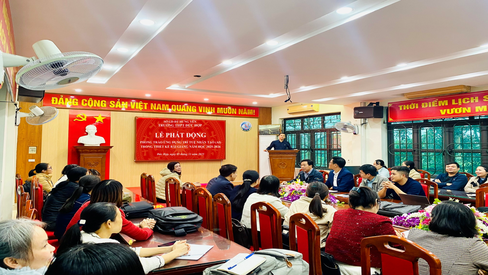 Chiều ngày 05/11/2025, thực hiện Kế hoạch số 1731 của Sở Giáo dục và Đào tạo Hưng Yên, nhà trường đã long trọng tổ chức Lễ phát động "Phong trào thi đua Ứng dụng Trí tuệ nhân tạo (AI) trong thiết kế bài giảng" cho năm học 2025-2026.