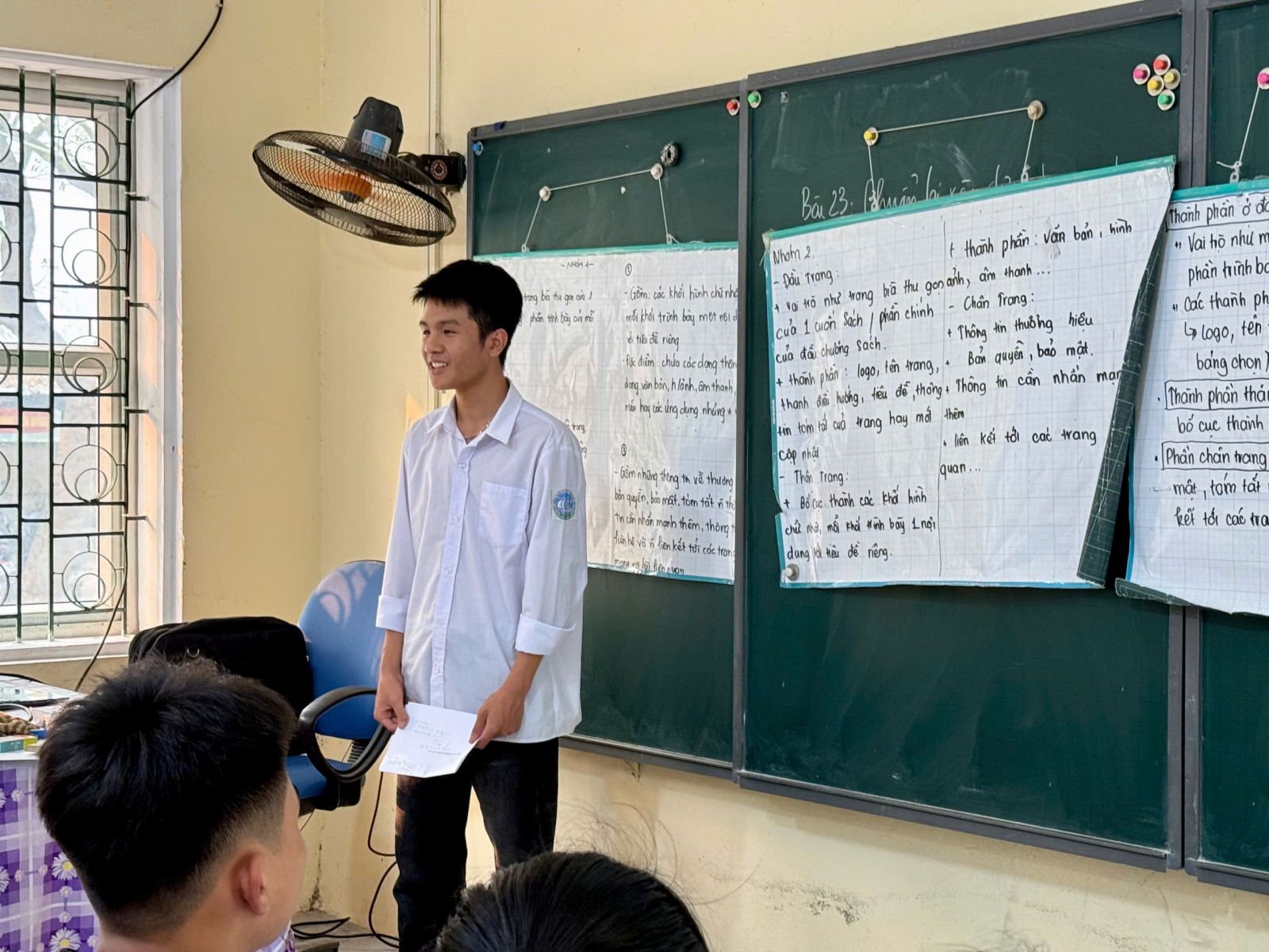 Hoạt động trình bày sản phẩm được tổ chức tương đối hiệu quả. Đại diện các nhóm báo cáo ý tưởng thiết kế website, các nhóm khác lắng nghe và tham gia nhận xét. Qua đó, học sinh được rèn luyện kỹ năng trình bày, giao tiếp và phản biện. Một số nhóm đã có những ý tưởng sáng tạo, gắn với thực tế như website giới thiệu lớp học, website chia sẻ tài liệu học tập hoặc trang thông tin cá nhân.