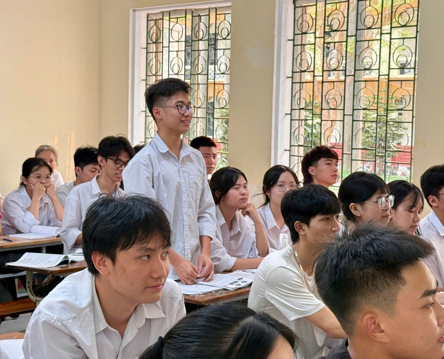 📸 Ảnh 3: Đại diện nhóm trình bày sản phẩm, các nhóm khác lắng nghe và phản biện.