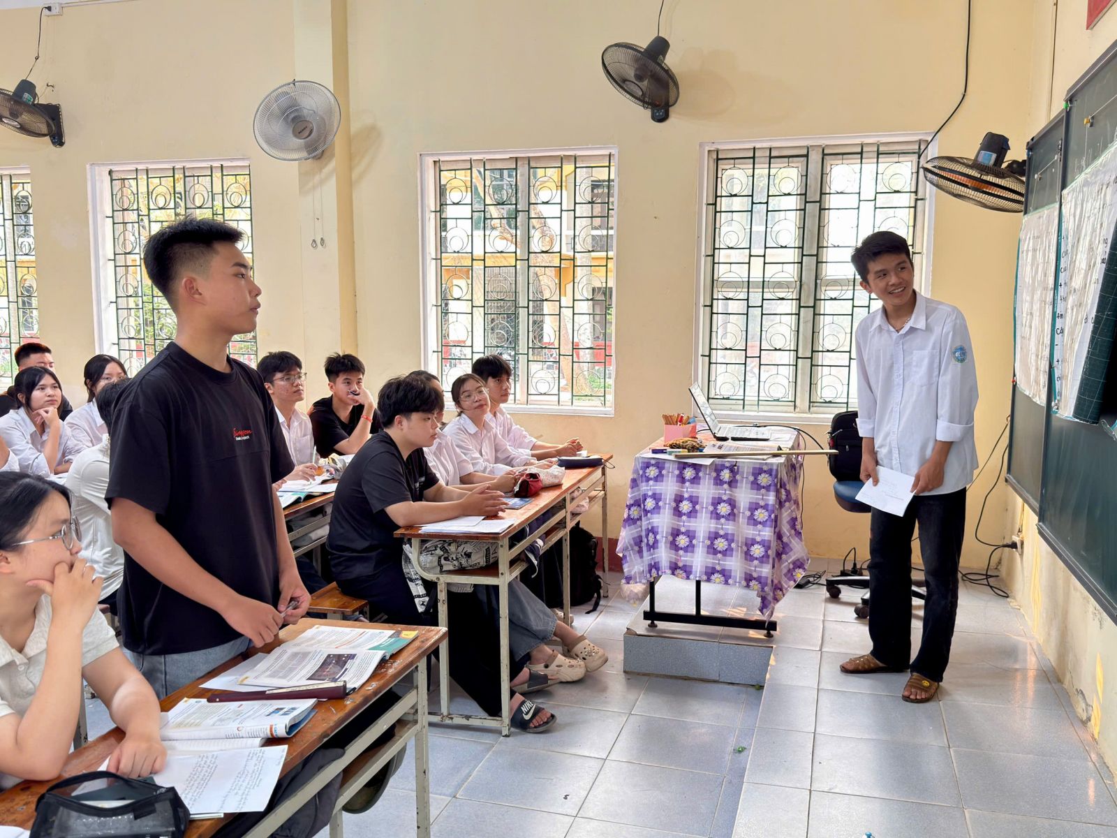 Trước hết, việc đặt câu hỏi tương tác với học sinh của giáo viên chưa thực sự đa dạng và có chiều sâu. Một số câu hỏi còn mang tính tái hiện, chưa gợi mở được tư duy phân tích và sáng tạo của học sinh. Việc phân hóa câu hỏi theo đối tượng chưa rõ nét, dẫn đến một bộ phận học sinh tham gia chưa tích cực. Tổ chuyên môn lưu ý cần xây dựng hệ thống câu hỏi theo hướng mở, tăng cường các câu hỏi định hướng tư duy, đồng thời tạo thêm thời gian chờ để học sinh suy nghĩ và phản hồi.