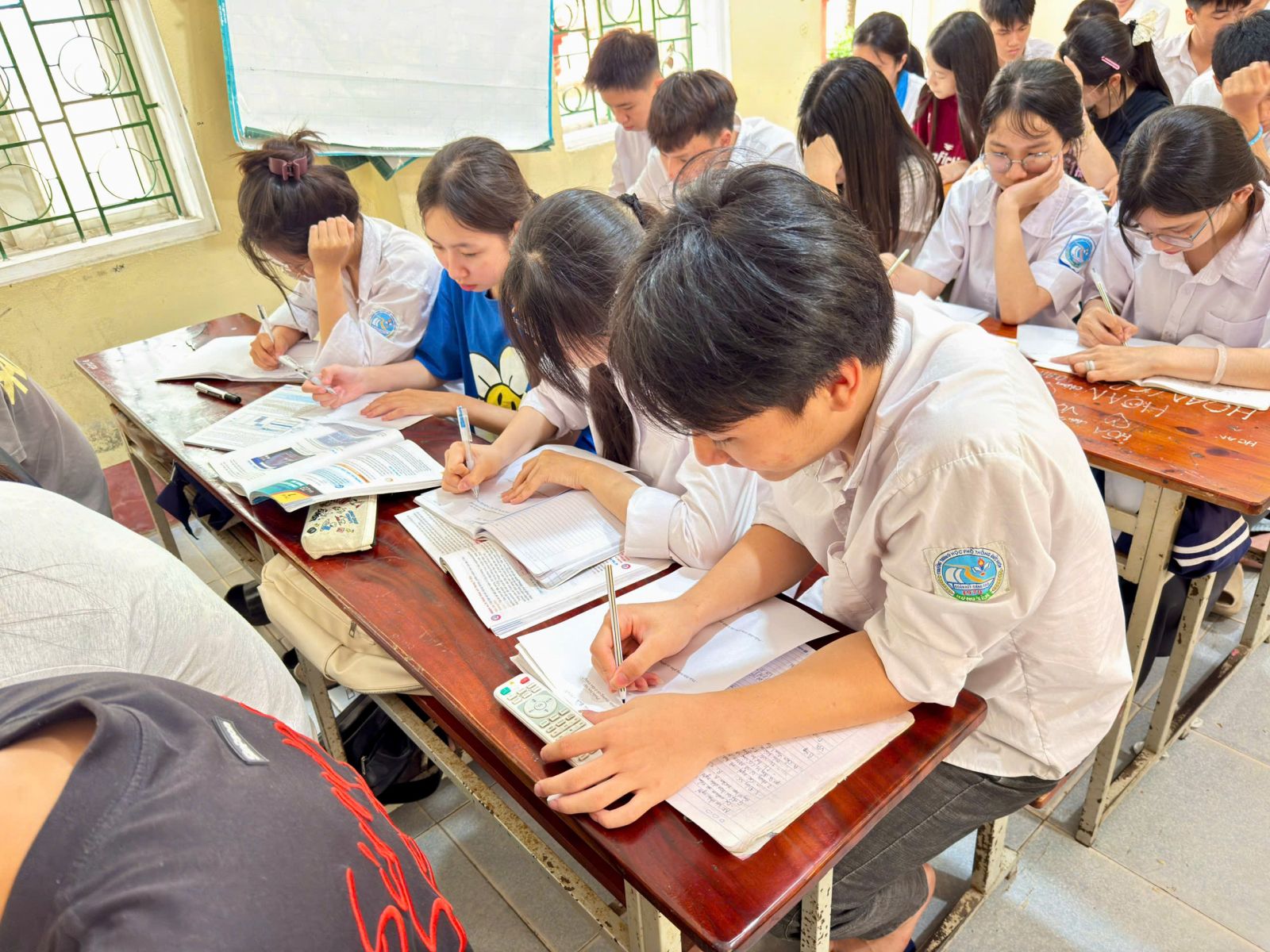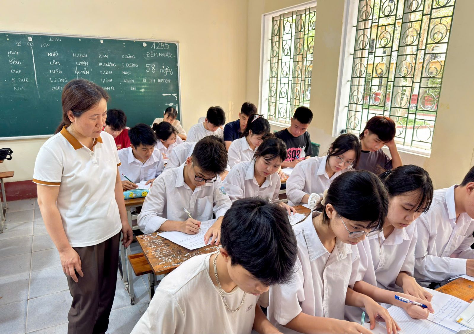 📸 Ảnh 1: Toàn cảnh lớp học 12A5 trong giờ học Tin học – không khí học tập nghiêm túc, tích cực.