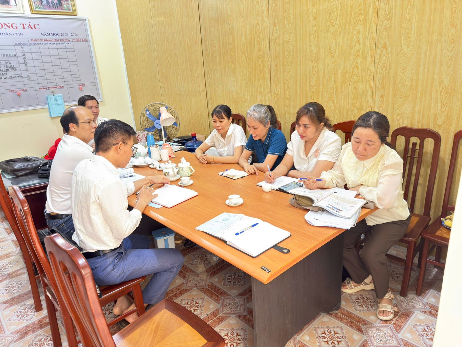 📸 Ảnh 4: Sinh hoạt chuyên môn – giáo viên trao đổi, rút kinh nghiệm sau tiết dạy.
