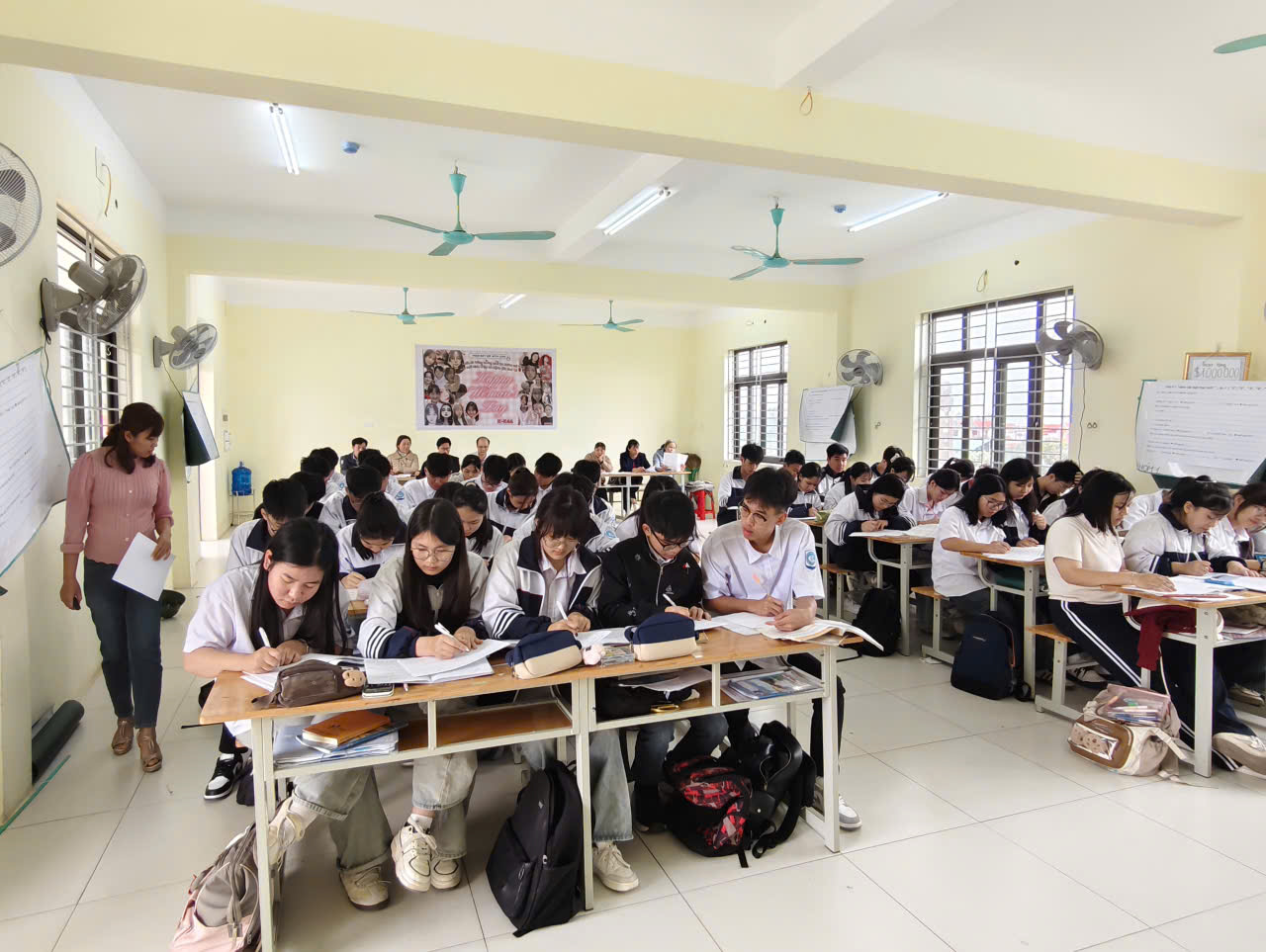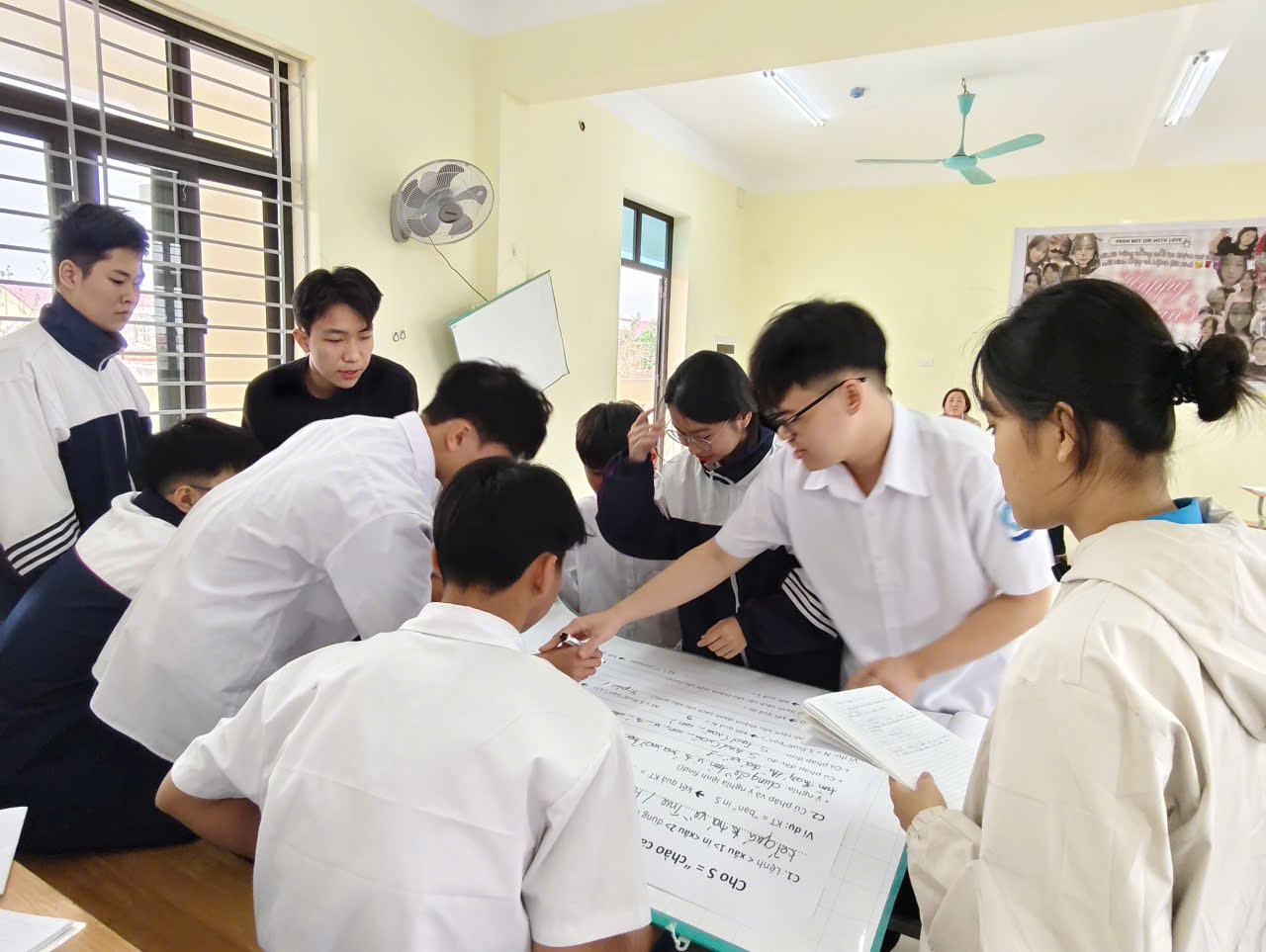 Học sinh lớp 10 tích cực thảo luận nhóm, trao đổi và trình bày kết quả trong tiết học.